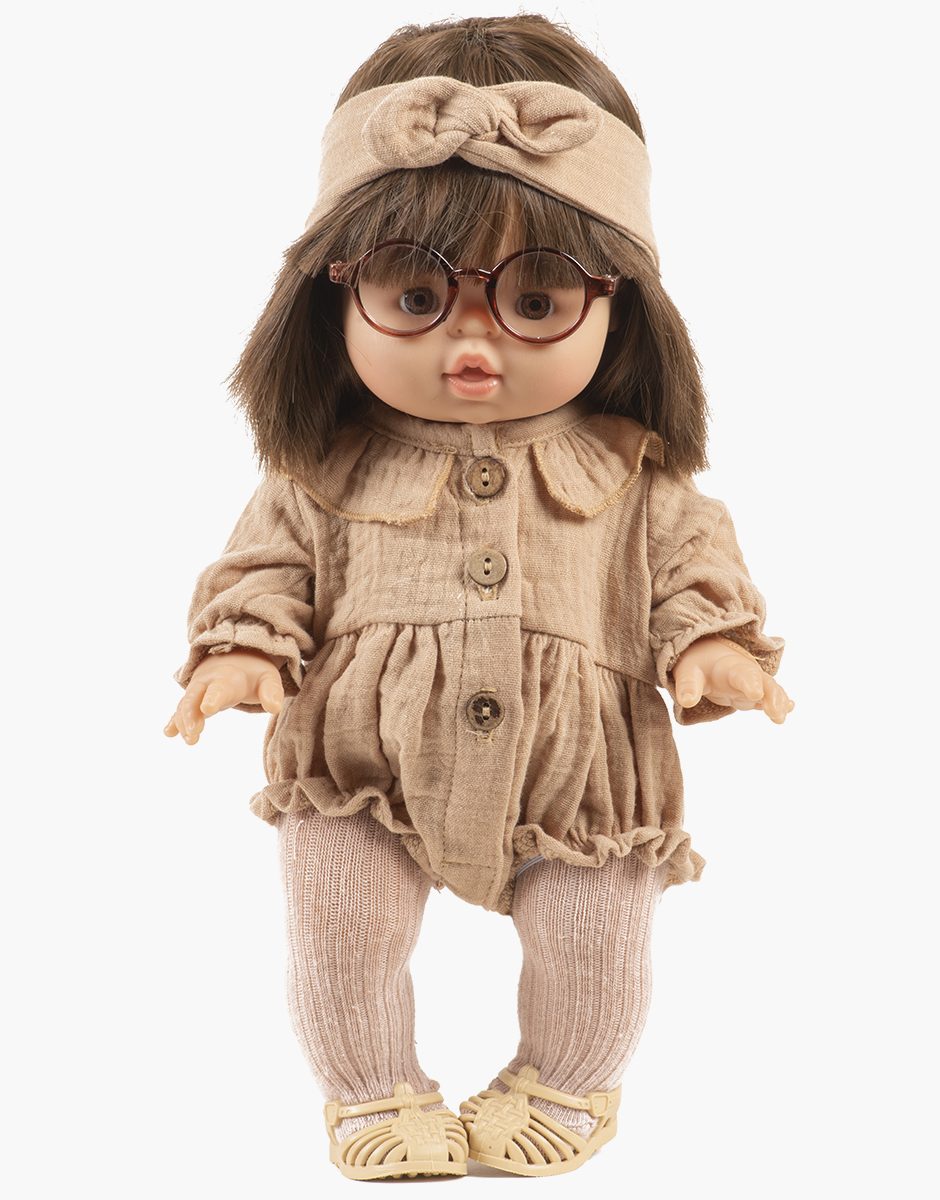 Barboteuse Léonore à manches longues en gaze de coton pour poupées Minikane Gordis 34 & 37cm.