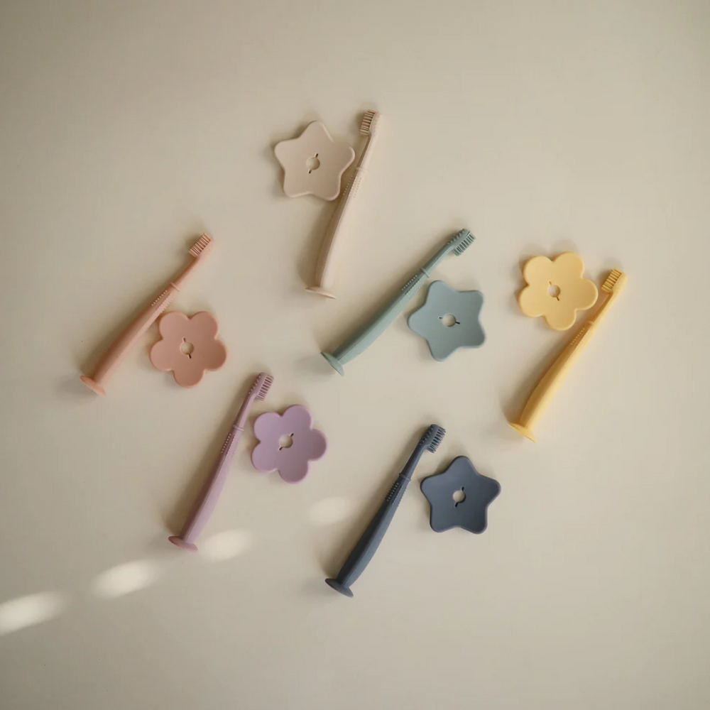 Découvrez notre brosse à dents enfant qui initie en douceur au brossage autonome et encourage de saines habitudes bucco-dentaires. Dotée d'un design ludique, elle est confectionnée à partir de silicone alimentaire de qualité, avec des poils ultra-doux qui caressent les gencives et les dents délicatement. Disponible dans des teintes apaisantes, elle comporte une base en silicone à aspiration pour une utilisation pratique, ainsi qu'un protège-sécurité amovible, prévenant le risque de bâillonnement et d'étouffement. Cette brosse à dents d'entraînement assure sécurité et facilité, fabriquée à partir de silicone non toxique, exempt à 100% de BPA, BPS, PVC et phtalate. Adoptez une approche ludique pour une hygiène bucco-dentaire impeccable dès le plus jeune âge.