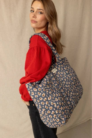 Le cabas SAHA se pare d’un imprimé léopard audacieux qui apporte caractère et style. Son grand format en coton matelassé permet de transporter tous vos essentiels avec aisance, que ce soit pour le marché, la plage ou les sorties en famille. Pratique et tendance, il devient un indispensable au quotidien.
