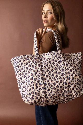 Le cabas SAHA se pare d’un imprimé léopard audacieux qui apporte caractère et style. Son grand format en coton matelassé permet de transporter tous vos essentiels avec aisance, que ce soit pour le marché, la plage ou les sorties en famille. Pratique et tendance, il devient un indispensable au quotidien.