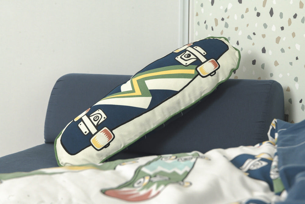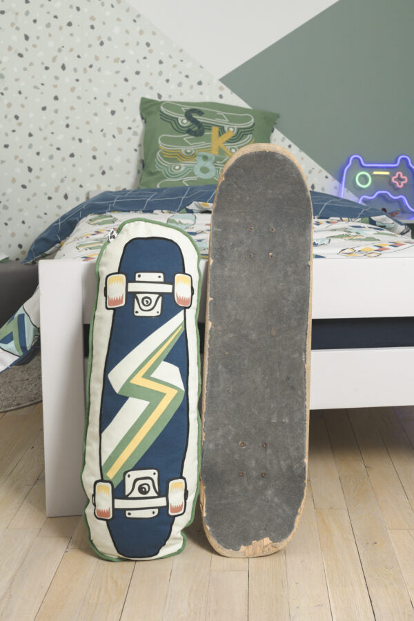 Apportez une touche fun et originale à la chambre de votre enfant avec le coussin déhoussable CALIFORNIA en forme de skate.