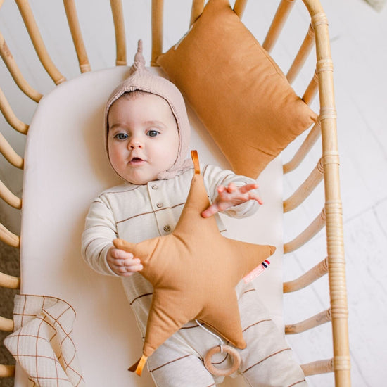 Le doudou musical, c'est le must have des cadeaux de naissance, un carton plein lors des baby shower. Sa couleur camel se marie avec toutes les décorations de chambres et plaît autant aux filles qu'aux garçons.