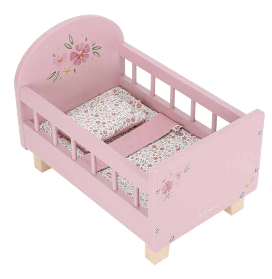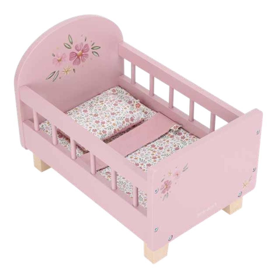 Les enfants aiment imiter leurs parents en jouant au papa ou à la maman avec leurs poupées et leurs peluches. Les jeux de rôle favorisent la créativité et l'imagination et ce lit de poupée est un jouet parfait pour encourager cela. Il est fabriqué en bois robuste et, pour que les poupées soient encore plus à l'aise, il est livré avec un oreiller, une couverture et un drap-housse dans le magnifique motif Floral Soft Flowers.