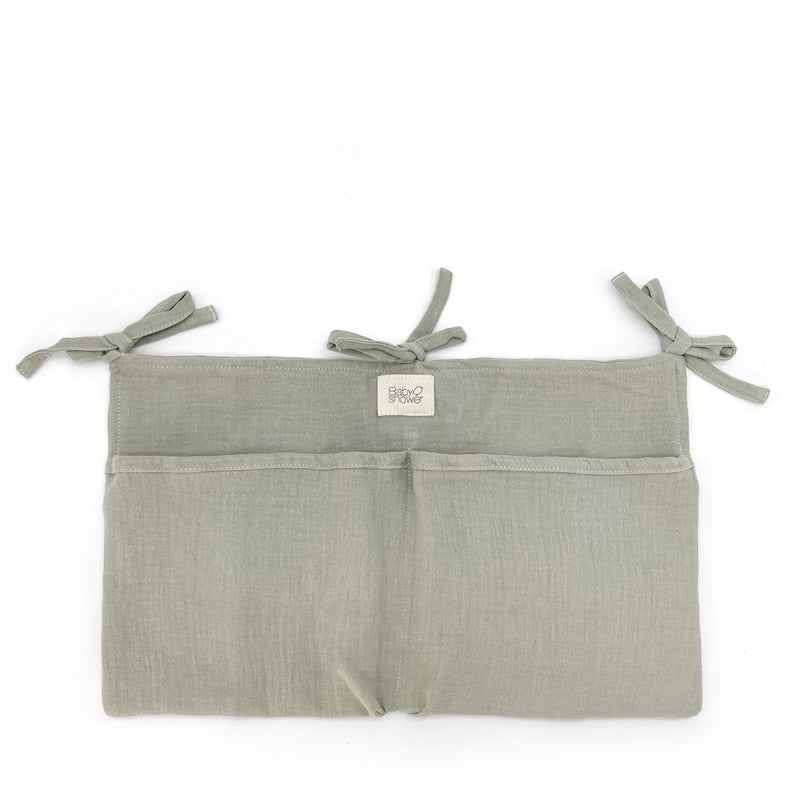 Organisateur de berceau pratique pour attacher les barreaux et ranger les petits accessoires qui sont si nécessaires lorsque votre bébé s’endort. Il a deux poches et est fait de coton 100% biologique.