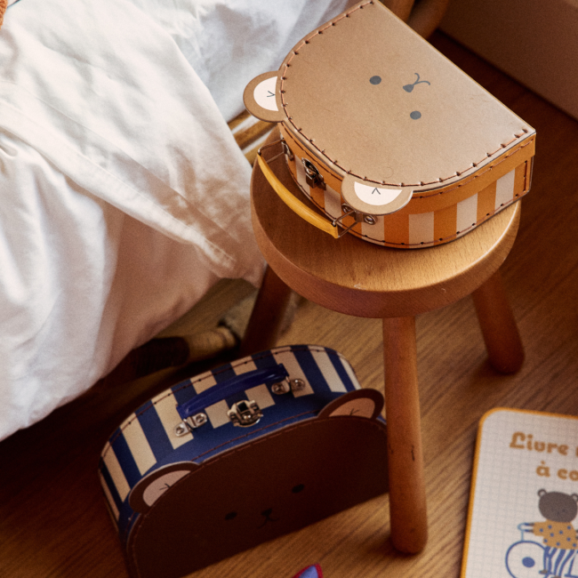Idéales pour ranger des jouets, trier ses petites affaires ou jouer à partir en voyage, ces valisettes enfant au look rétro sont à la fois pratiques et pleines de charme. Chaque valise est équipée d’une poignée en métal et d’un fermoir solide, pour accompagner les enfants dans leurs jeux et leurs trajets. Les deux s'imbriquent facilement, trop pratique pour les ranger ou les emporter !