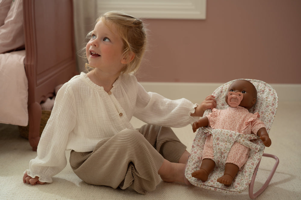 Offrez à votre enfant un moment de tendresse avec ce joli transat pour poupée ! Son design élégant, agrémenté d’un tissu fleuri et d’une structure légère en métal, en fait l’accessoire idéal pour bercer et apaiser les petits compagnons de jeu. Parfait pour stimuler l’imagination et enrichir les jeux d’imitation, ce transat deviendra vite un indispensable pour les jeunes parents en herbe, apportant douceur et réalisme aux aventures de jeu.